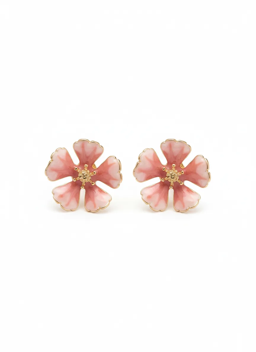 Elegant enamel floral stud earrings with gold detailing, designed for a fresh and stylish everyday look. Lightweight, trendy, and perfect for both casual and festive outfits. A beautiful statement piece for flower jewellery lovers.floral stud earrings, enamel earrings, gold plated flower studs, multy color, trendy earrings for women, statement stud earrings.